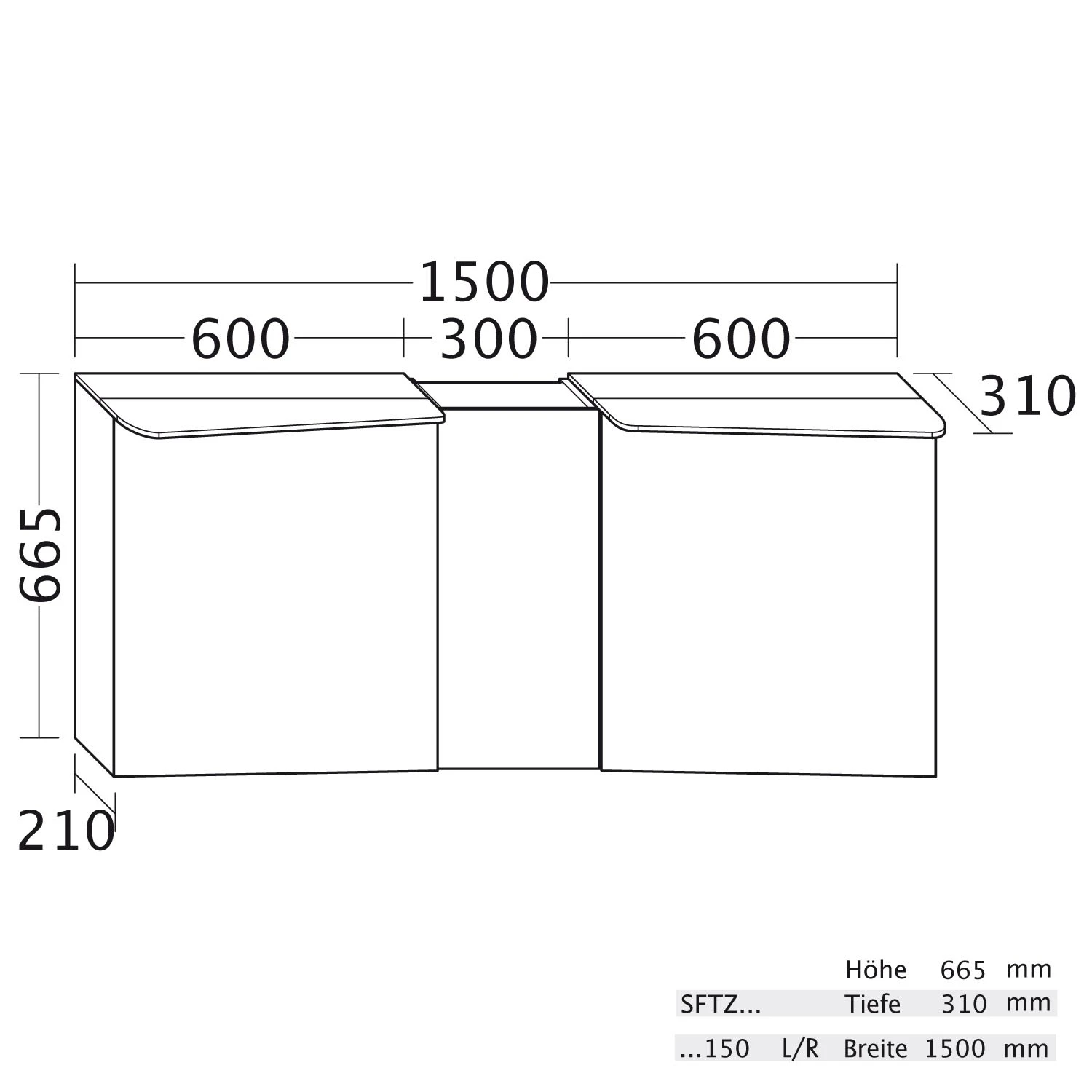 | Abmessungen | B: 150 T: 31 H: 66 cm |