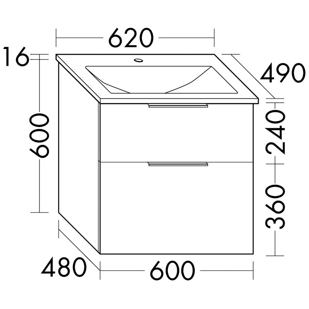 burgbad Eqio Waschtischkombination mit Mineralguss-Waschtisch 62 cm, mit Stangengriff P95