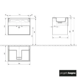 - 1 Schublade oben, 35 cm tief, mit Siphonausschnitt und Inneneinteilung