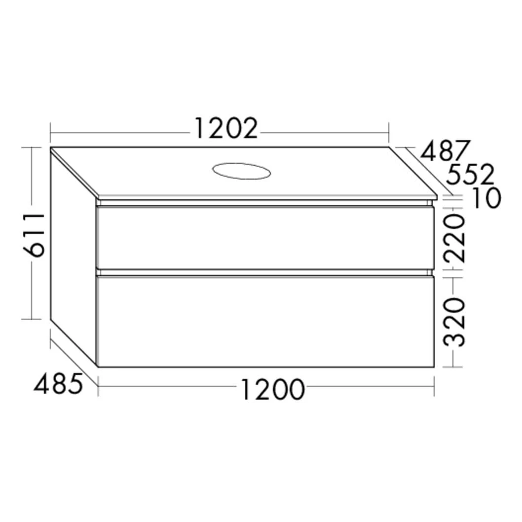burgbad Lin20 Waschtischunterschrank mit Konsolenplatte 120 cm, 2 Auszüge, Beckenausschnitt mittig
