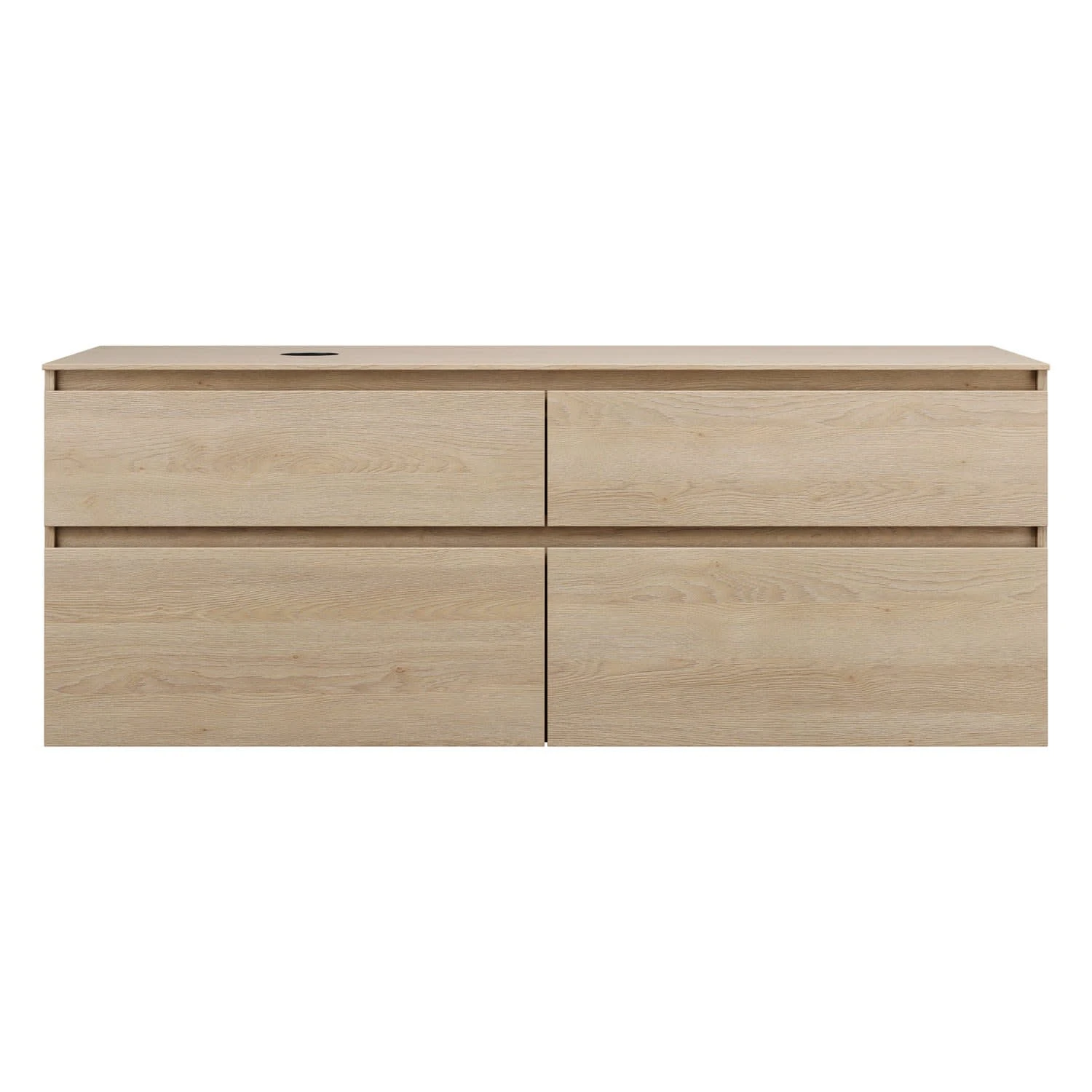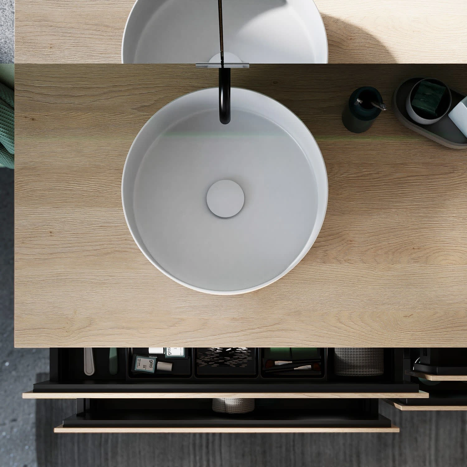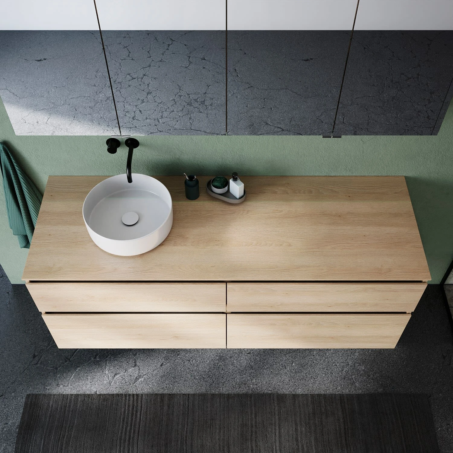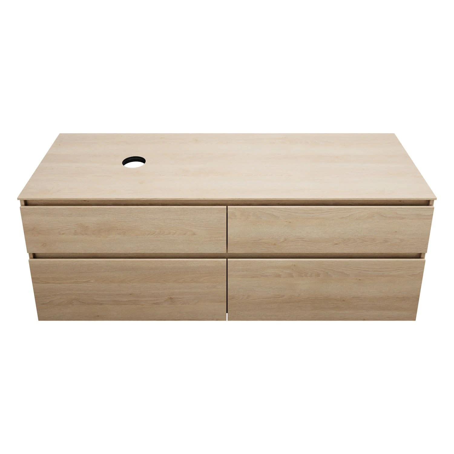 burgbad Lin20 Waschtischunterschrank mit Konsolenplatte 160 cm, 4 Auszüge, Beckenausschnitt links
