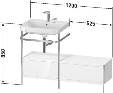 Duravit Happy D.2 Plus c-shaped Waschtisch mit 2 Hahnlöchern, 120 x 49 cm, mit 2 Schubkästen und Anbau rechts