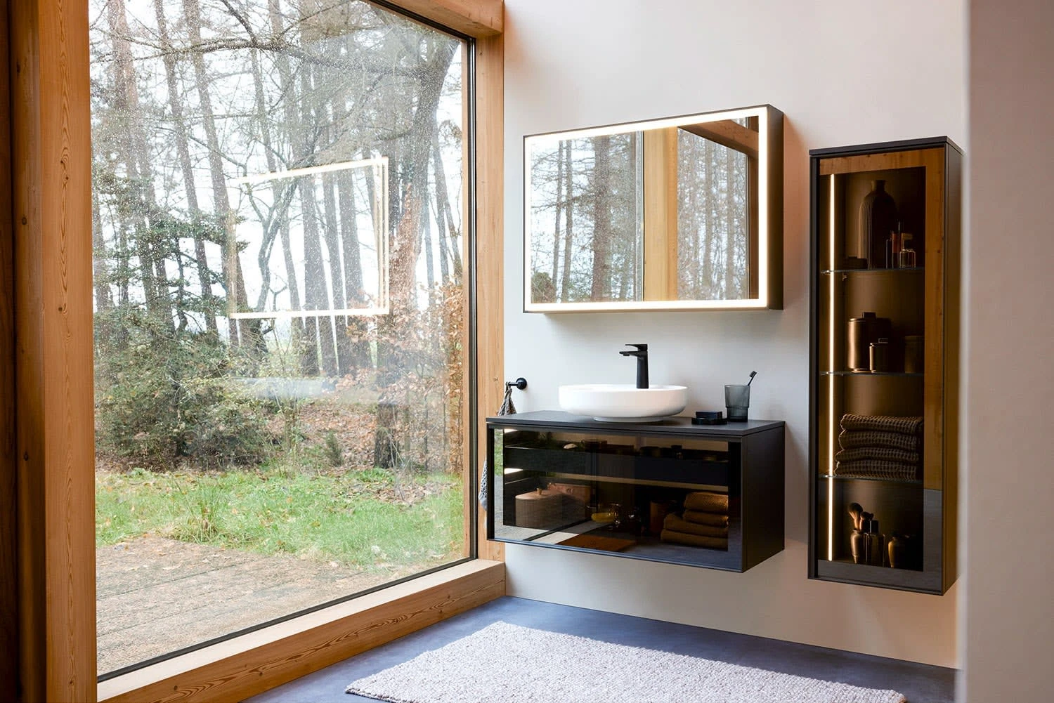 - Beleuchtung ist nur steuerbar mit Vitrium Spiegel / Spiegelschrank in der Version „Sensor Steuerung Innenbeleuchtung“