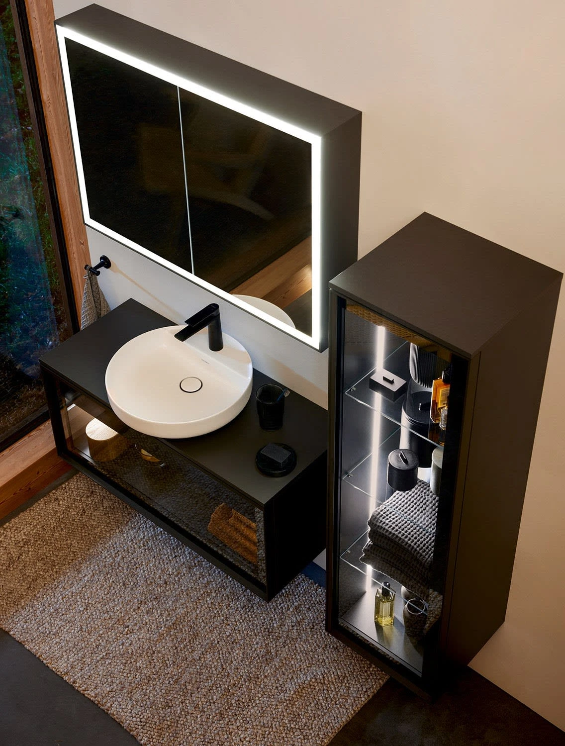 Duravit Vitrium Konsolenwaschtischunterbau mit Ausschnitt 100 x 45,9 cm, mit Glasfront, Griff graphit, mit LED Licht