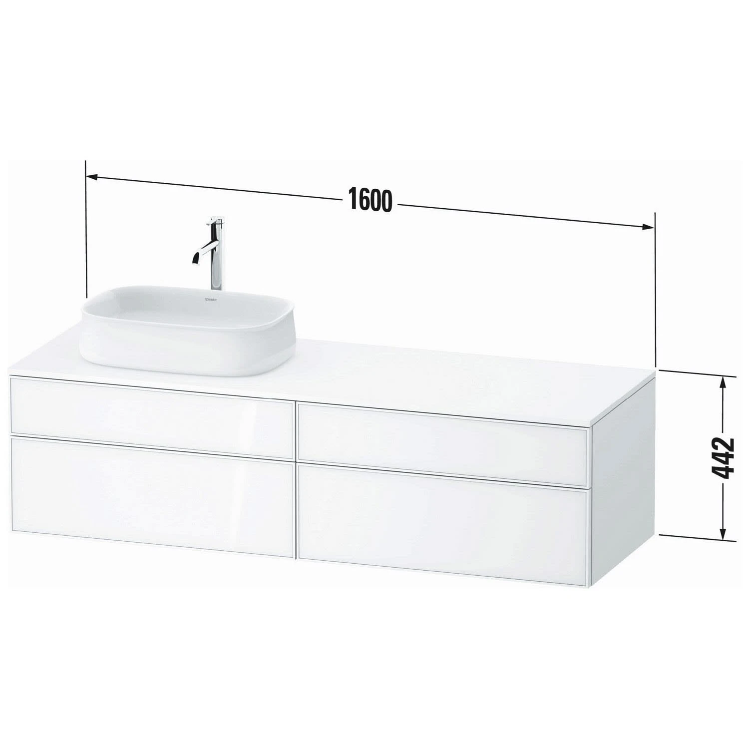 Duravit Zencha Konsolenwaschtischunterbau mit Ausschnitt rechts 160 x 44,2 cm, 4 Auszüge