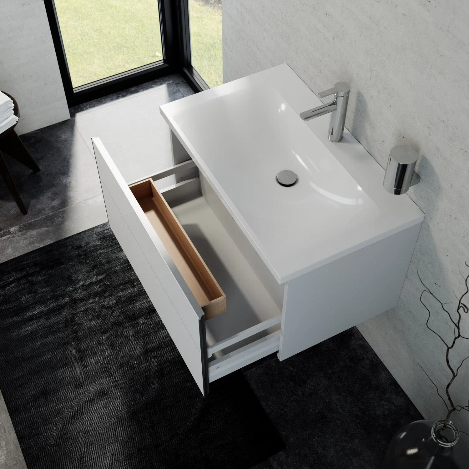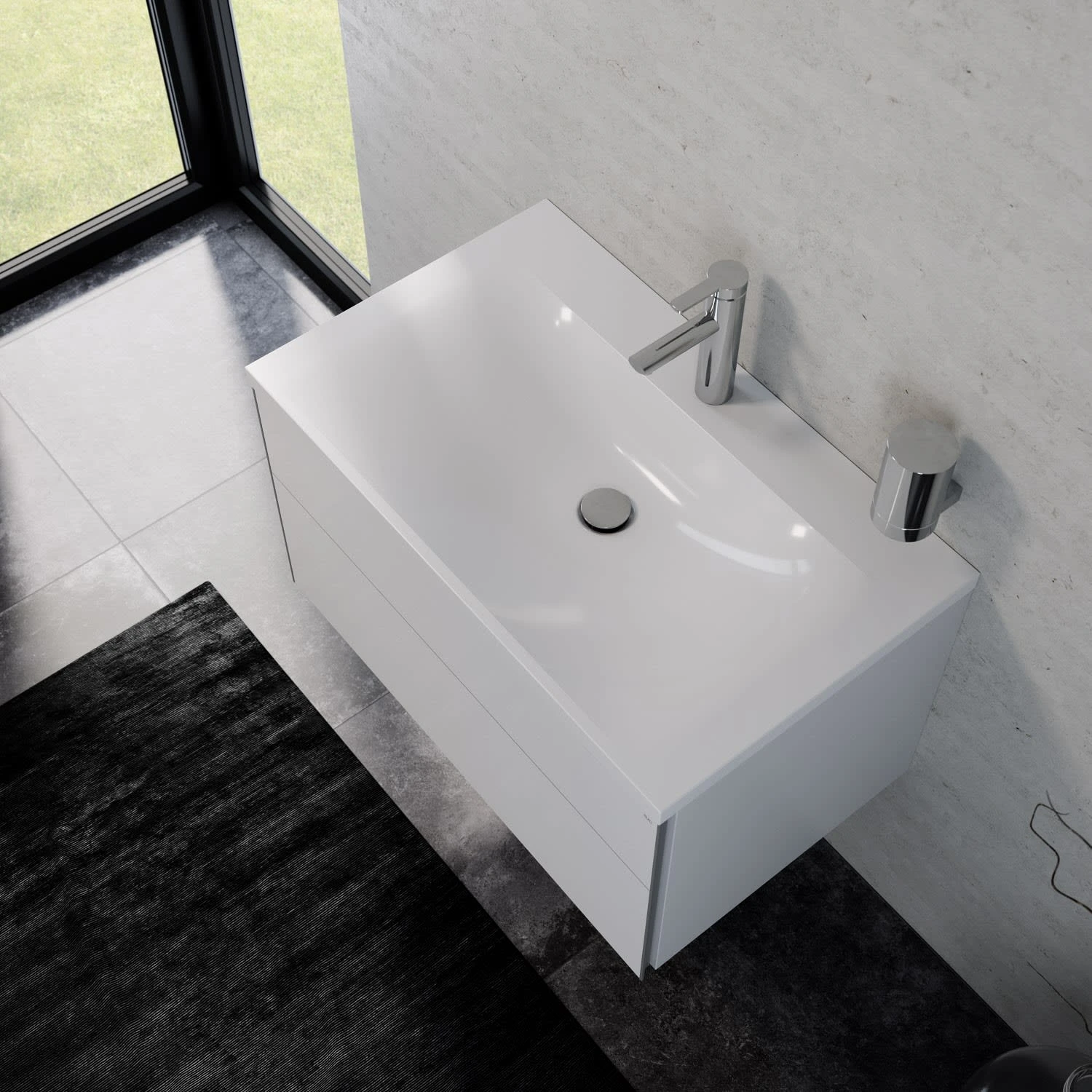 - Mineralguss-Waschtisch für 1-Loch-Armaturen geeignet