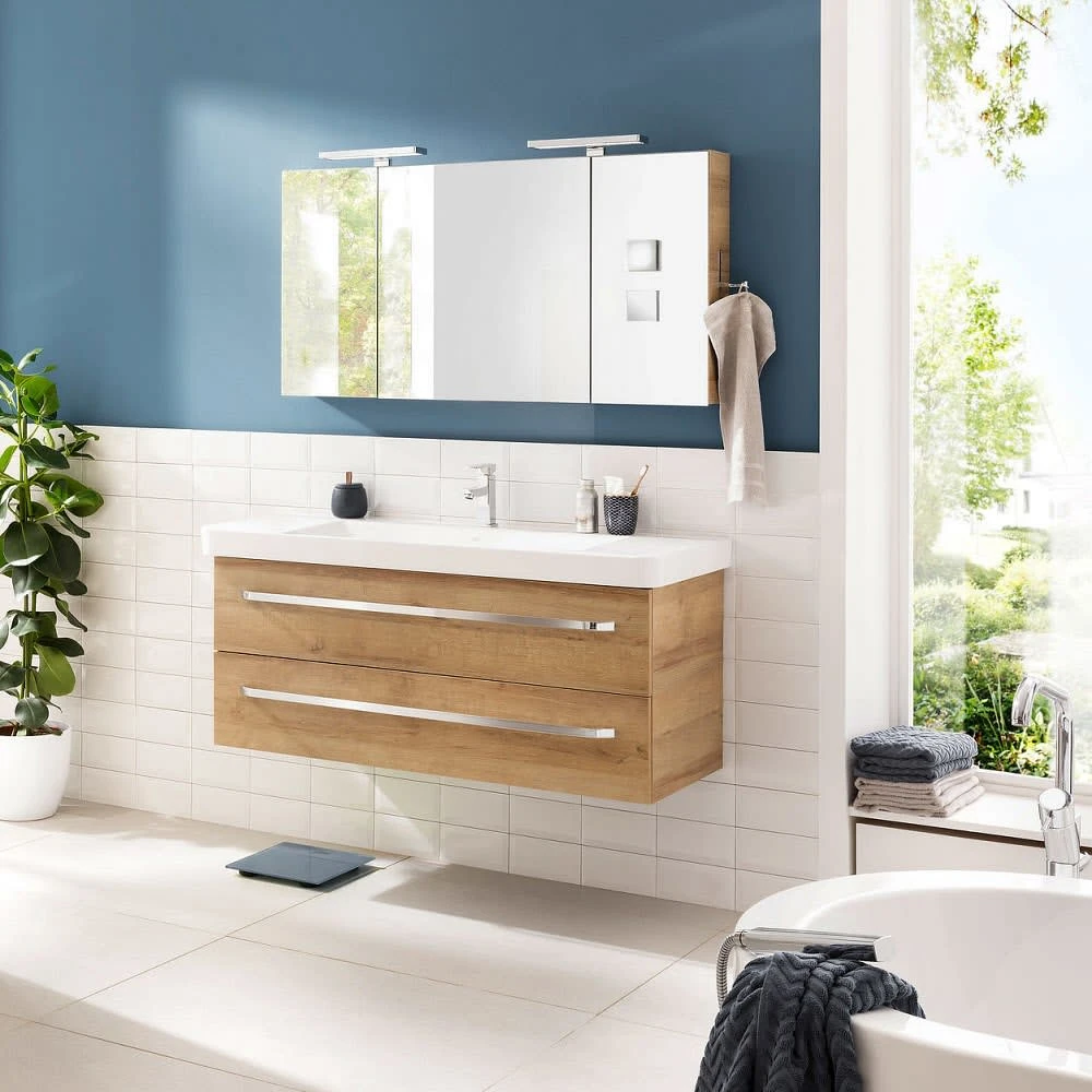Lanzet Spiegelschrank 120 x 14,5 x 68 cm mit 2 Leuchten L2 und 3 Türen