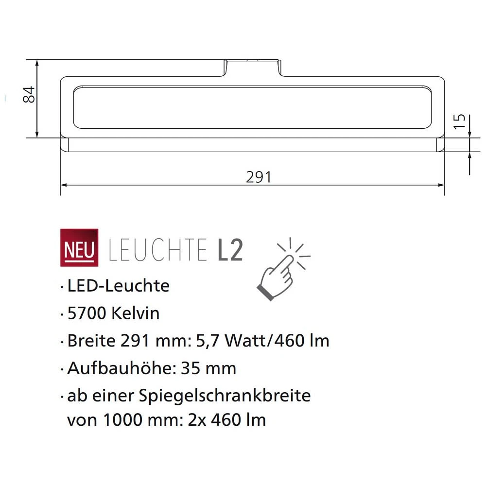 Der Anschluss einer LED-Ambientebeleuchtung ist beim Spiegelschrank mit Leuchte L2 nicht möglich.