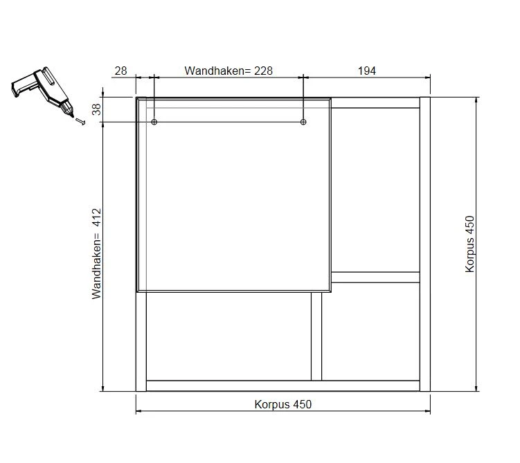 - mit 1 Drehtür oben rechts mit Scharnier rechts