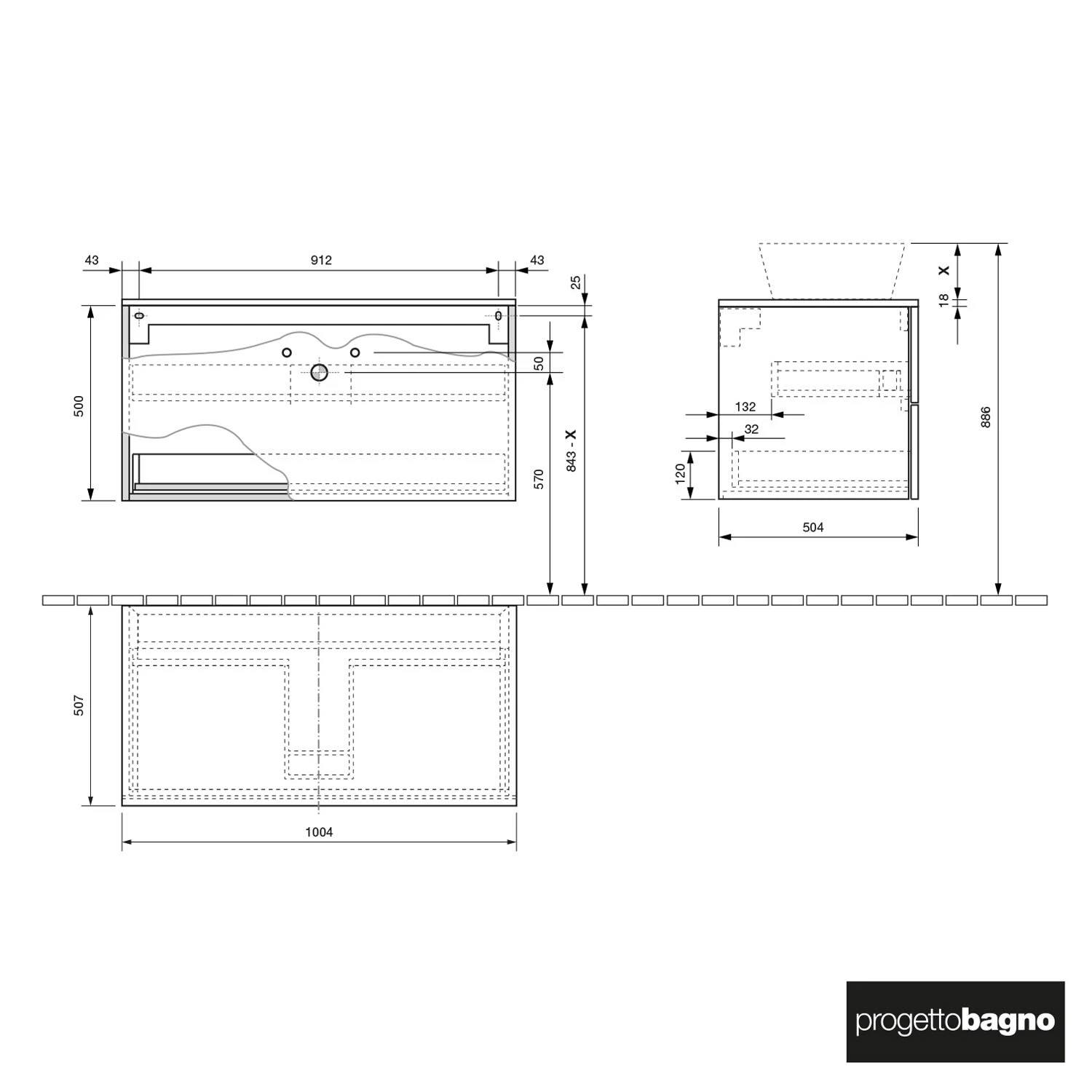 progettobagno Elba Modular Waschtischkonsole 100 cm
