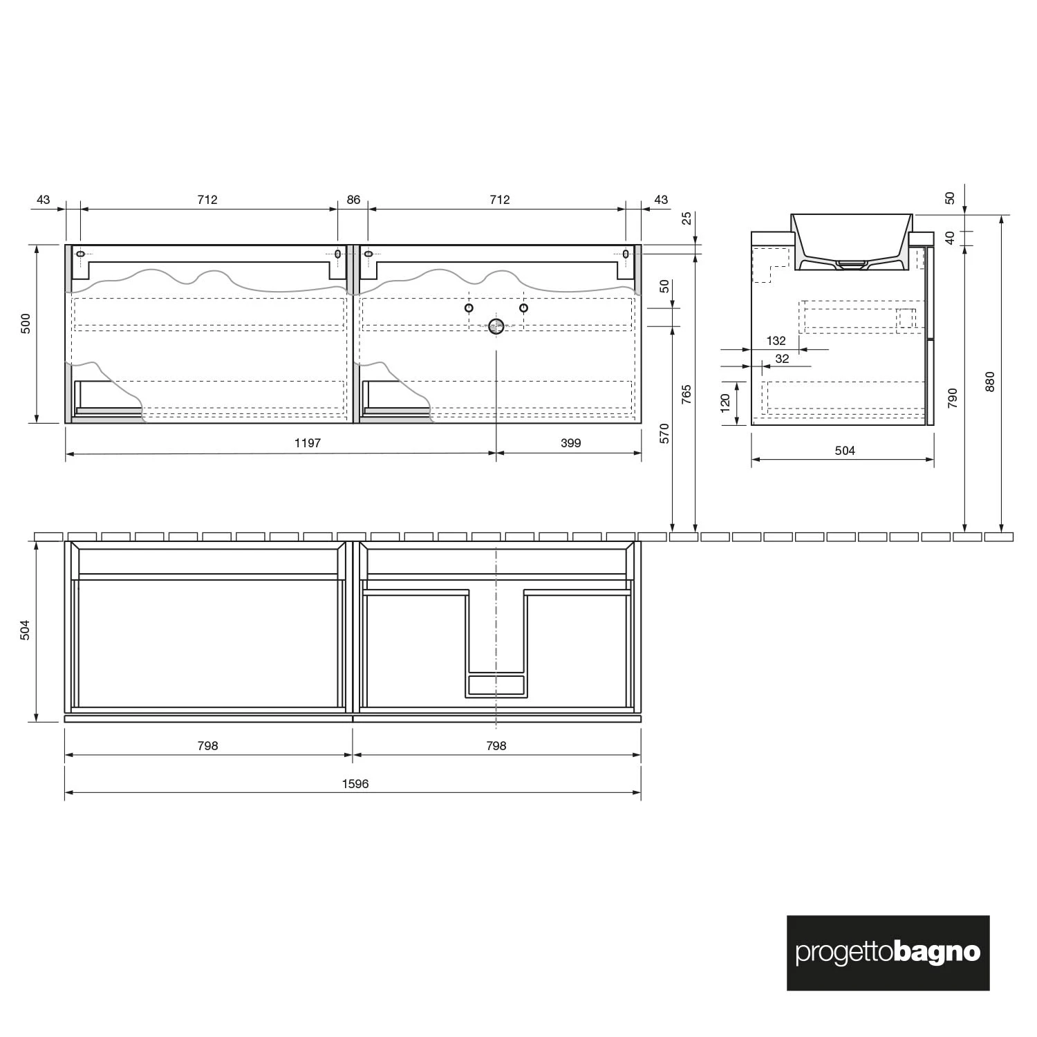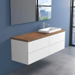 progettobagno Elba Terra Unterschrank 160 cm mit Holzplatte, Hahnlochbohrung und ELY 60 Einbauwaschtisch , Ausführung rechts