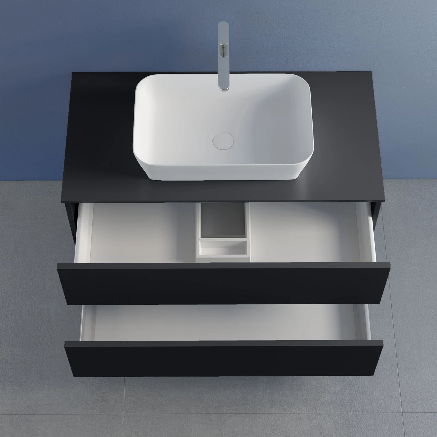 progettobagno Elba Unterschrank 100 cm mit Glasplatte, Hahnlochbohrung und FLY 56 Aufsatzwaschtisch