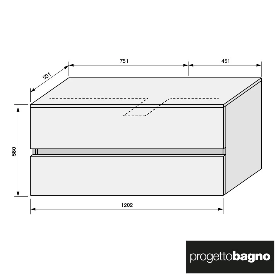 progettobagno Evo 54 Modular Waschtischkonsole 120 cm, Ausführung rechts