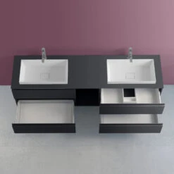 progettobagno Stresa Doppel-Unterschrank 190 cm mit Glasplatte ohne Hahnlochbohrung und ELY 60 Einbauwaschtischen