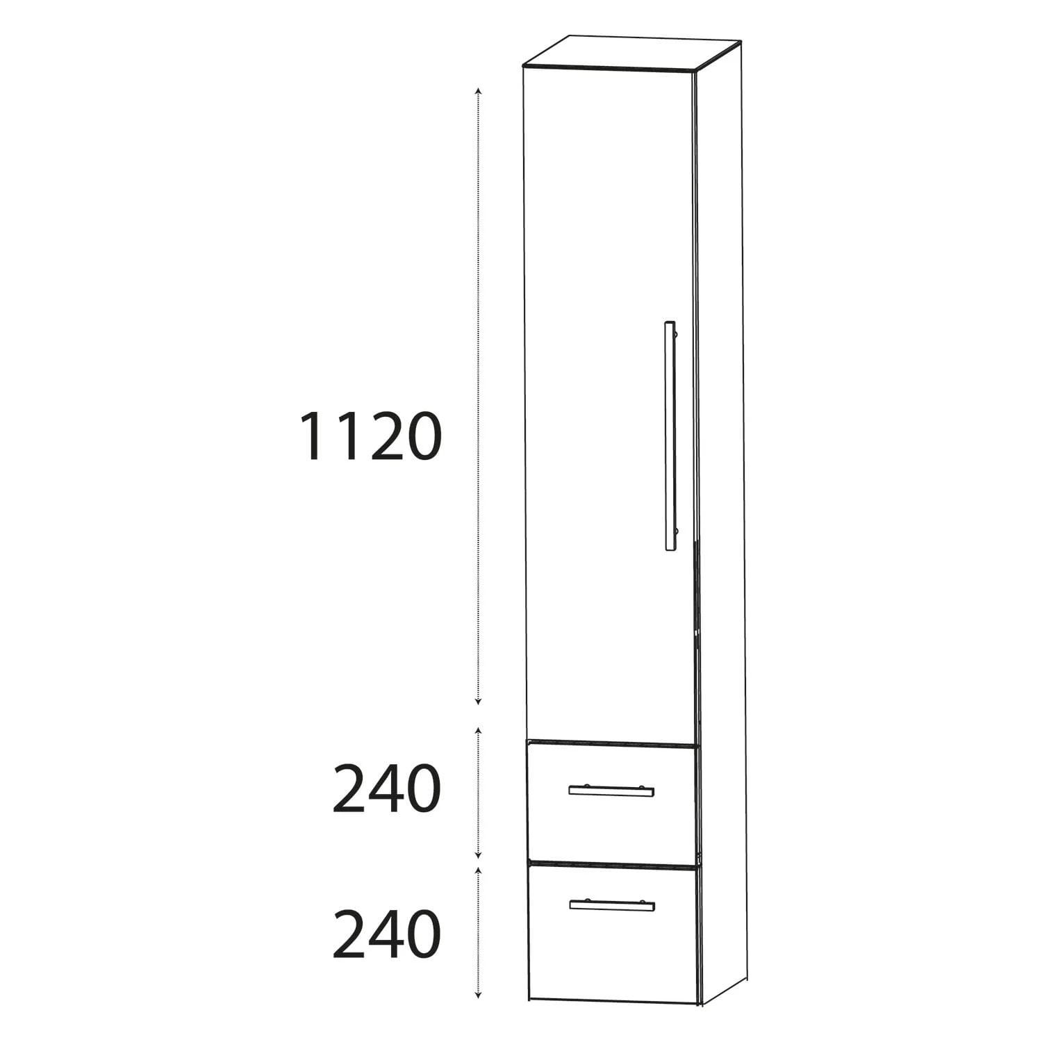 Puris b • cube Hochschrank 40 x 30 x 160 cm mit 2 Auszügen und 1 Tür, Anschlag links