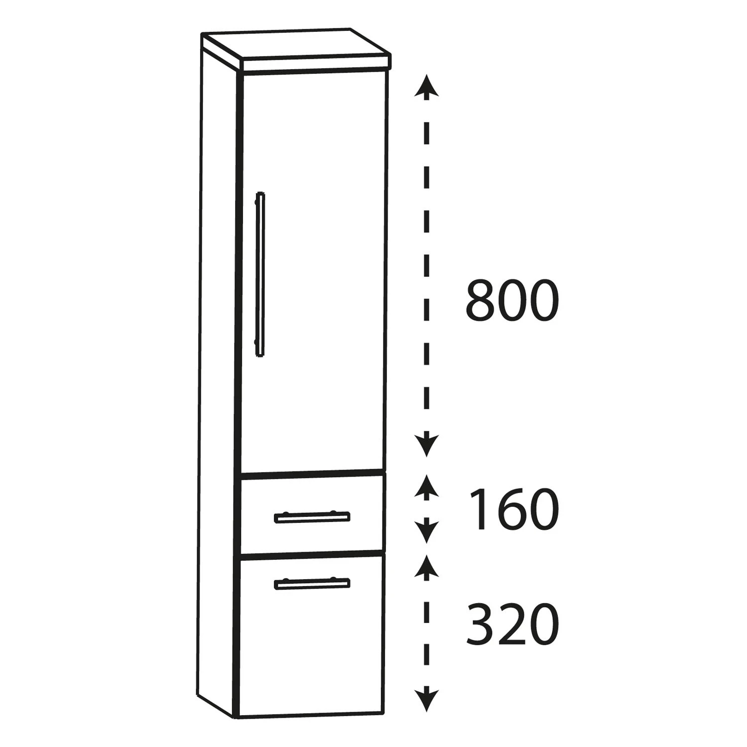 Puris Star Line Mittelschrank 30 x 30 x 130,8 cm mit 1 Auszug, 1 Schubkasten und 1 Tür, Anschlag rechts, Griff 338