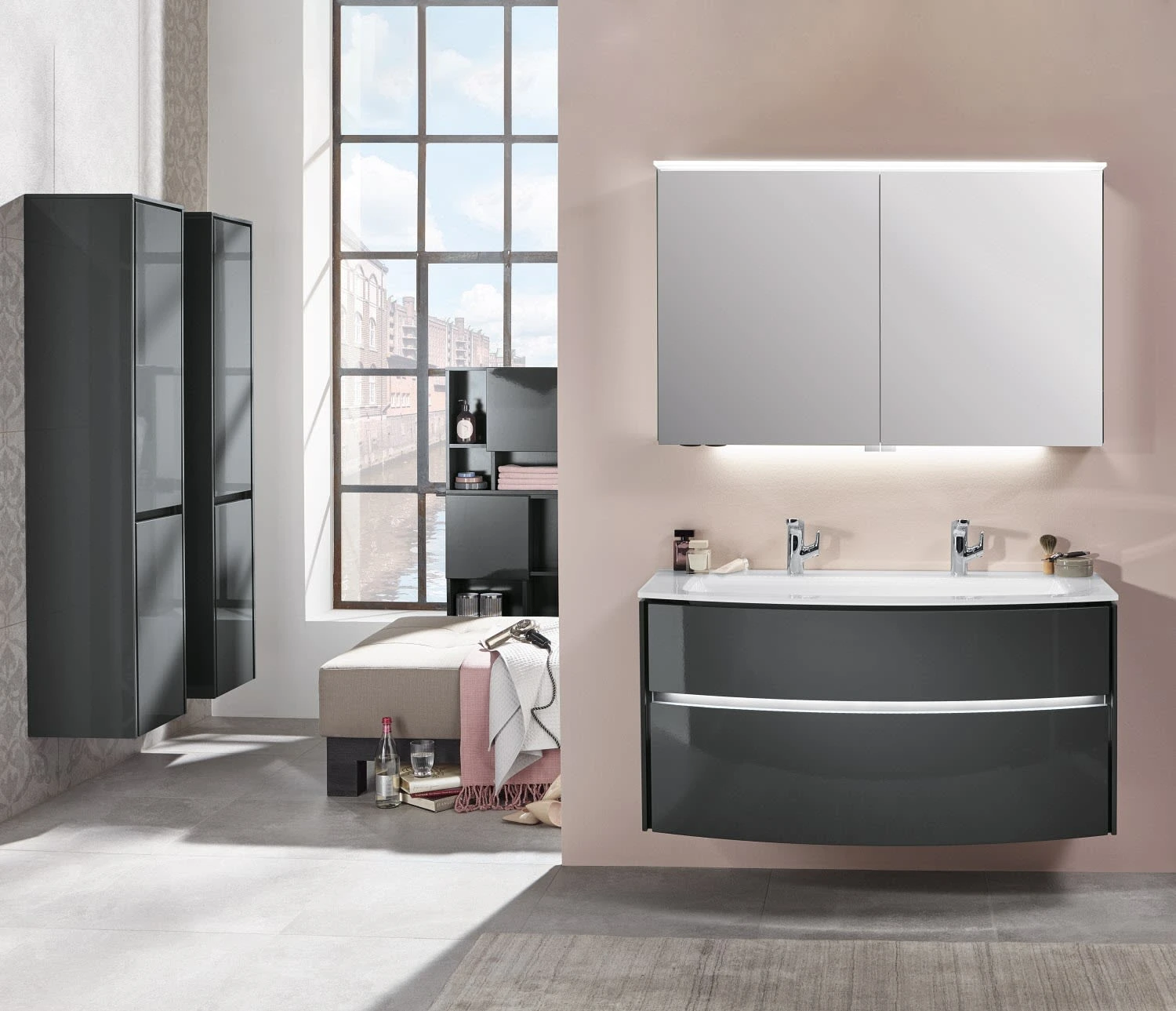 - Ambiente-Beleuchtung zwischen den Türen mit stufenlos dimmbarer Helligkeit