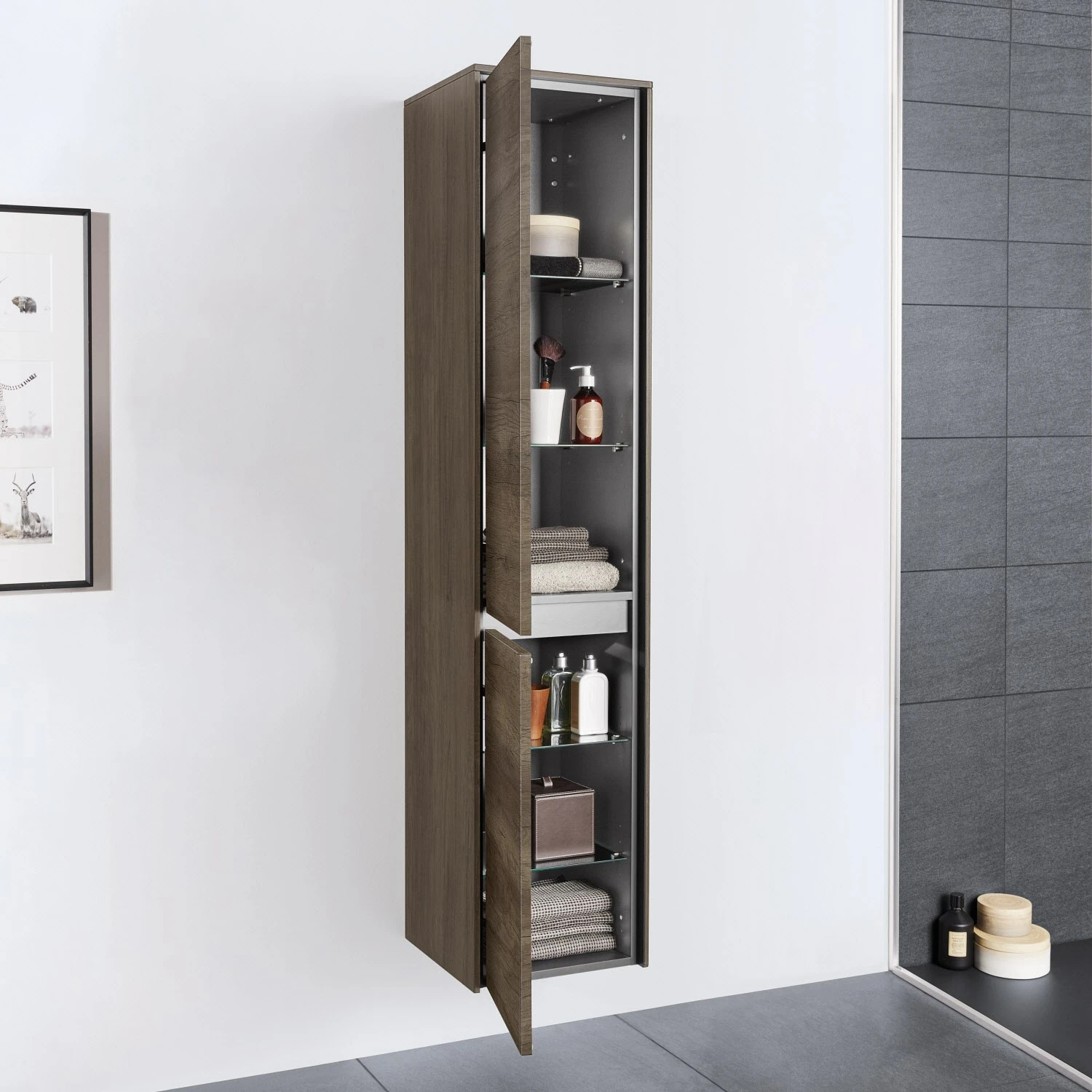 Sanipa Twiga Hochschrank 37,5 cm, 2 Türen mit Türanschlag links, inkl. LED-Beleuchtung