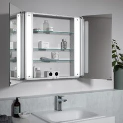 Kronenbach Moon 2.0, 3000K LED-Spiegelschrank 129,5 Cm Mit 2 Türen Und Steckdose Unten