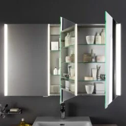 Lodge Spiegelschrank 130 Cm Mit 3 Türen Und LED-Aufbauleuchte