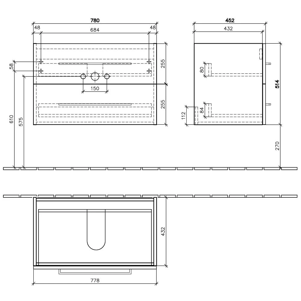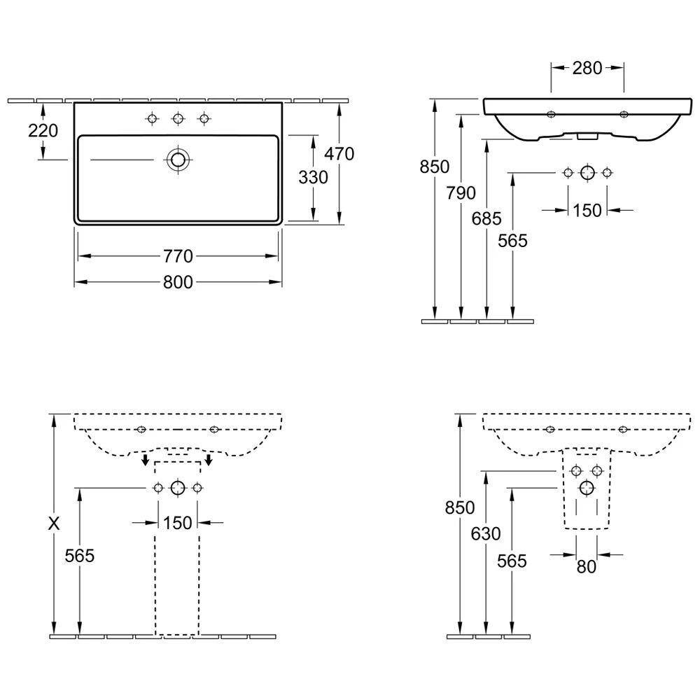 Villeroy & Boch Avento 2.0 Waschtisch-Kombination 80 cm mit 2 Auszügen, 1 Hahnloch und 1 Überlauf
