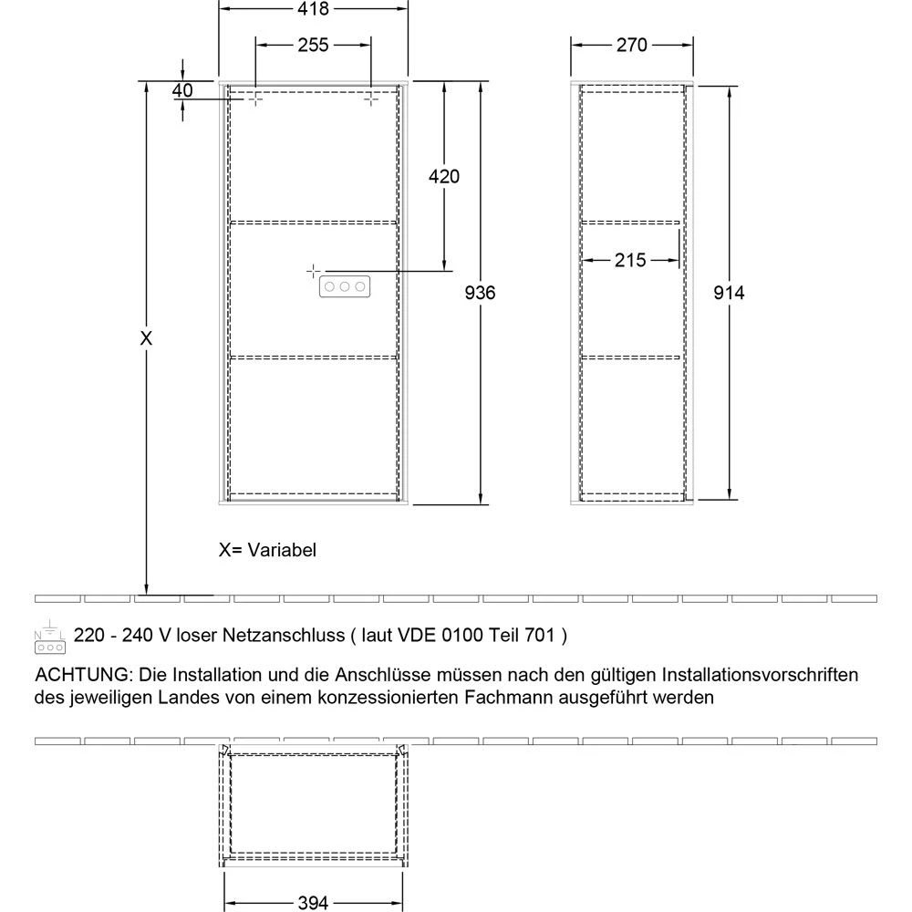 Villeroy & Boch Finion Seitenschrank 93,6 cm mit Wandbeleuchtung, Anschlag links