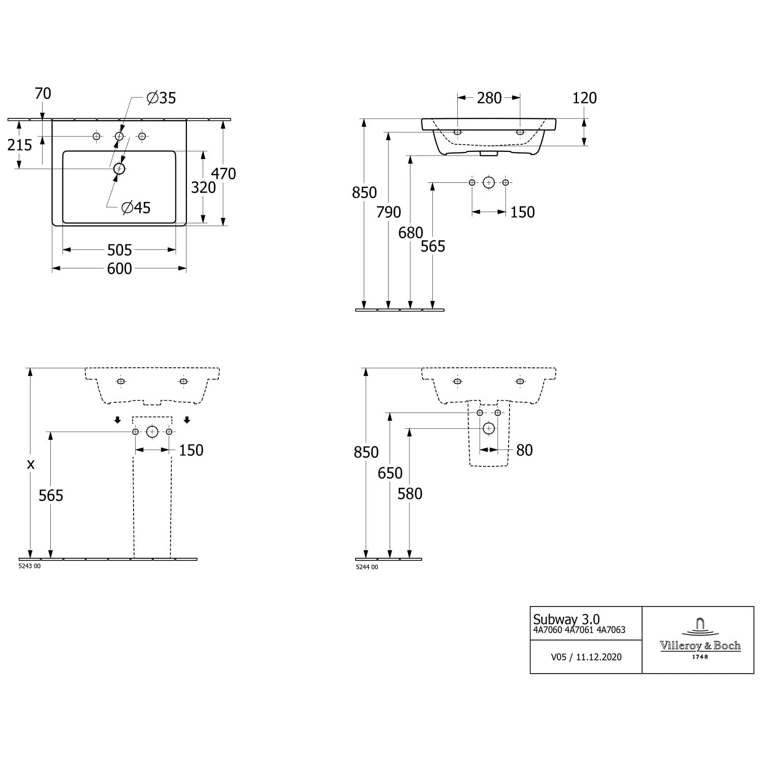 Villeroy & Boch Subway 3.0 Badmöbel-Set 60 cm, Griff volcano black, 2 Auszüge
