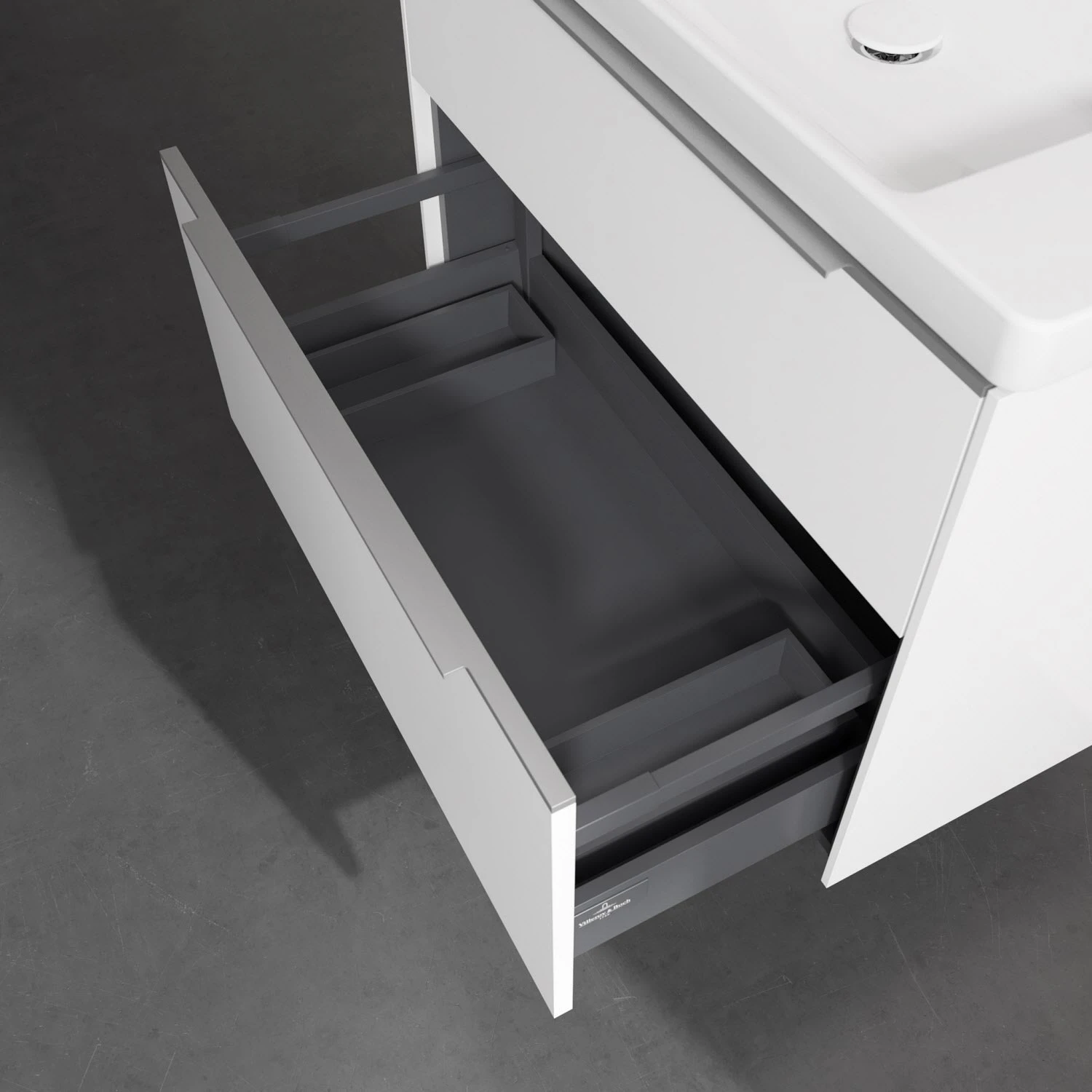 - kein Umfallen oder Verrutschen von Pflegeprodukten in den Schubladen dank rutschhemmendem Boden