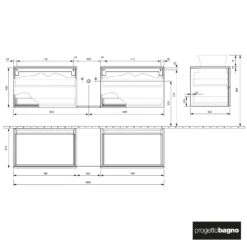 Progettobagno Elba Modular Glass Doppel- Waschtischkonsole 190 Cm Ohne Hahnlochbohrung